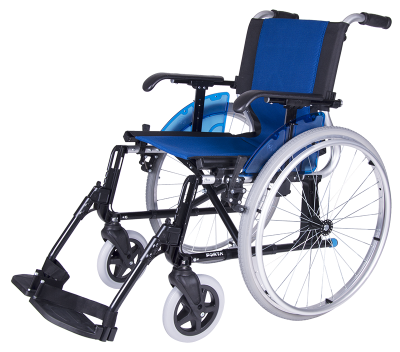 La silla de ruedas FORTA LINE es una silla de cruceta, manual y ligera fabricada en aluminio sin soldaduras. Pesa solo 13,5 kg y puede ser fabricada tanto con ruedas traseras de 300 o de 600 mm. Cuenta con varios colores de asiento y reposabrazos y con un diseño ergonómico que permite el uso de la totalidad de la profundidad del asiento al usuario, ganando en confortabilidad.